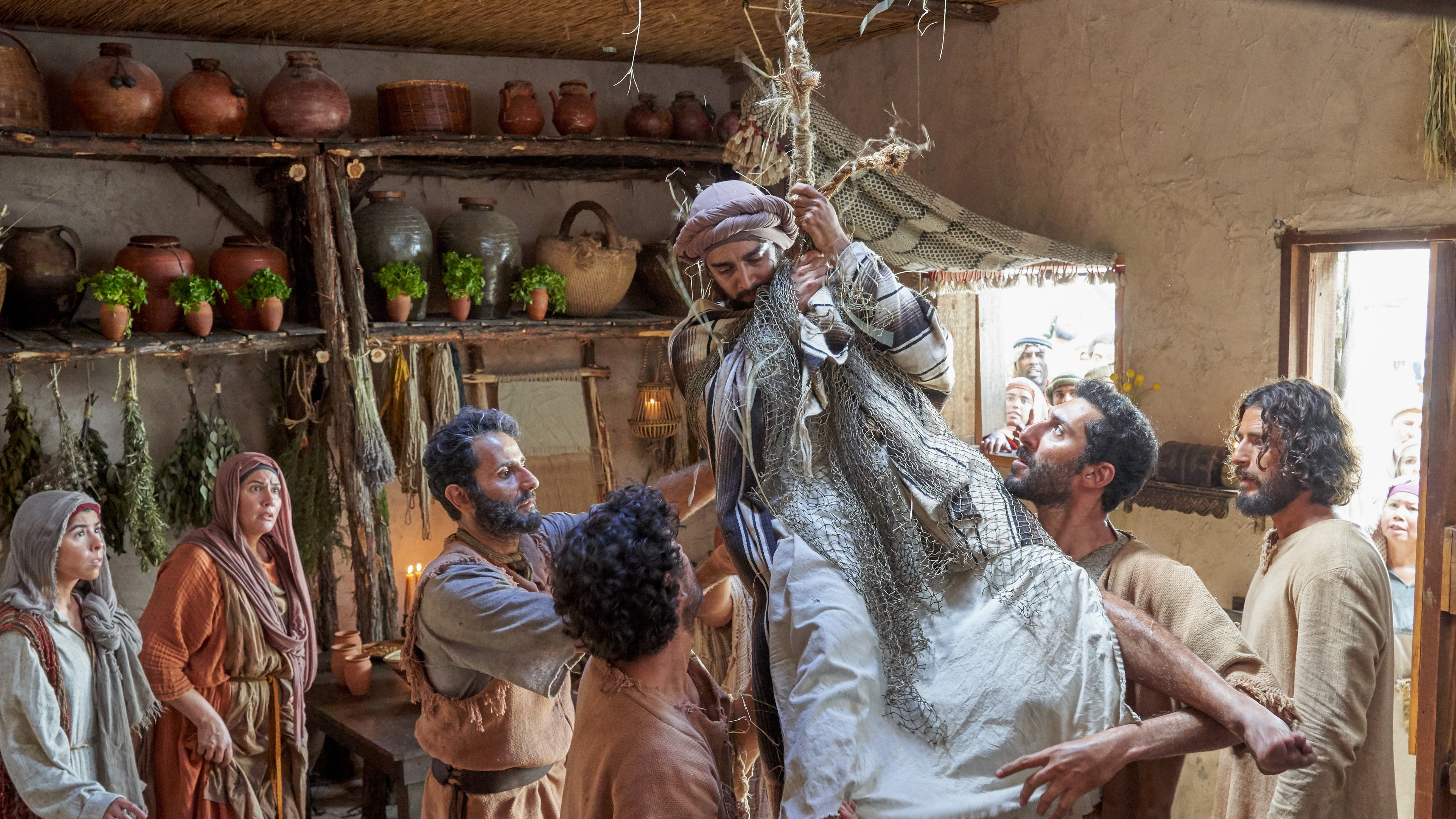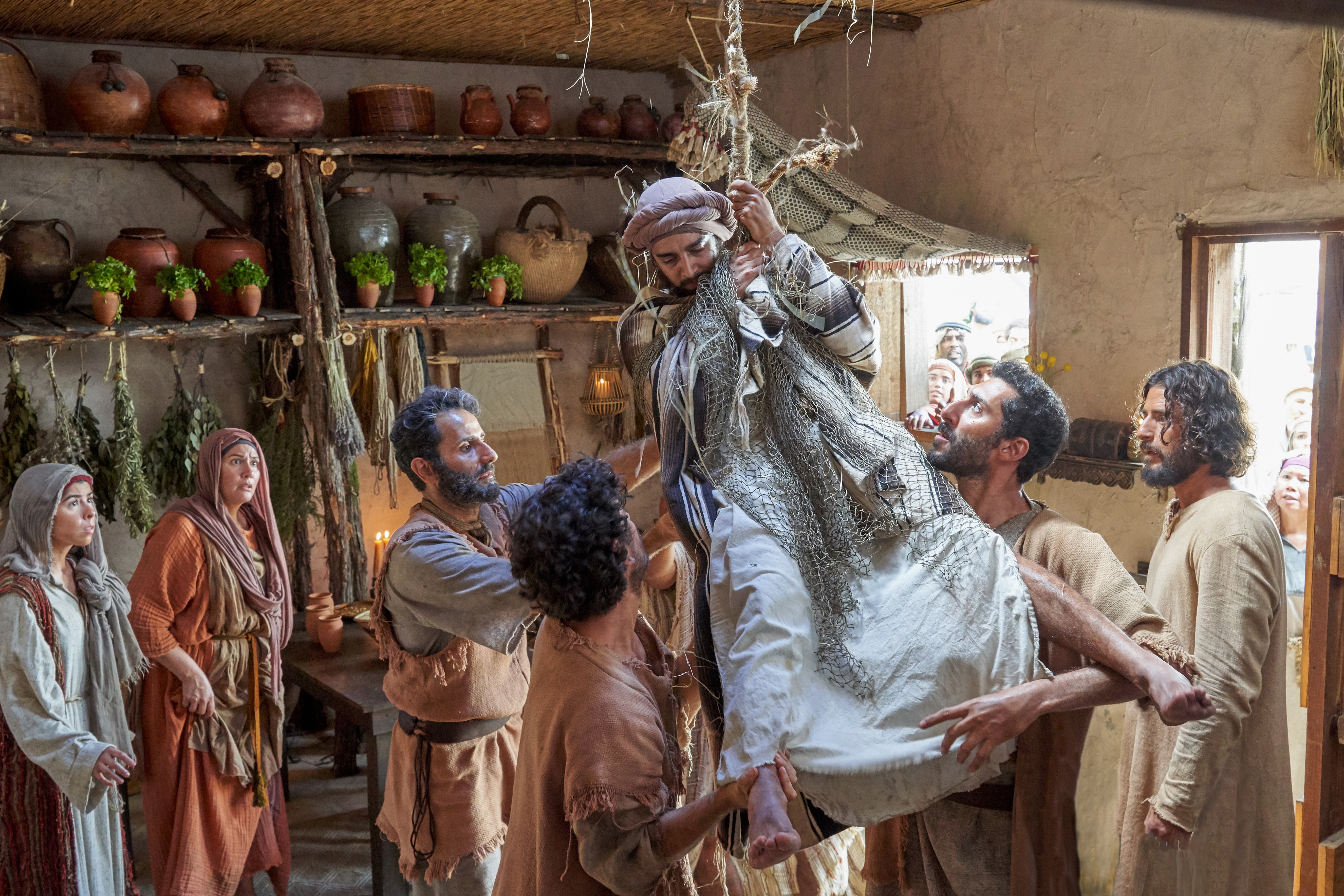 The paralyzed man lowered through the roof — Mark 2:1–12 (NIV) (The Chosen Season 2, Episode 6)