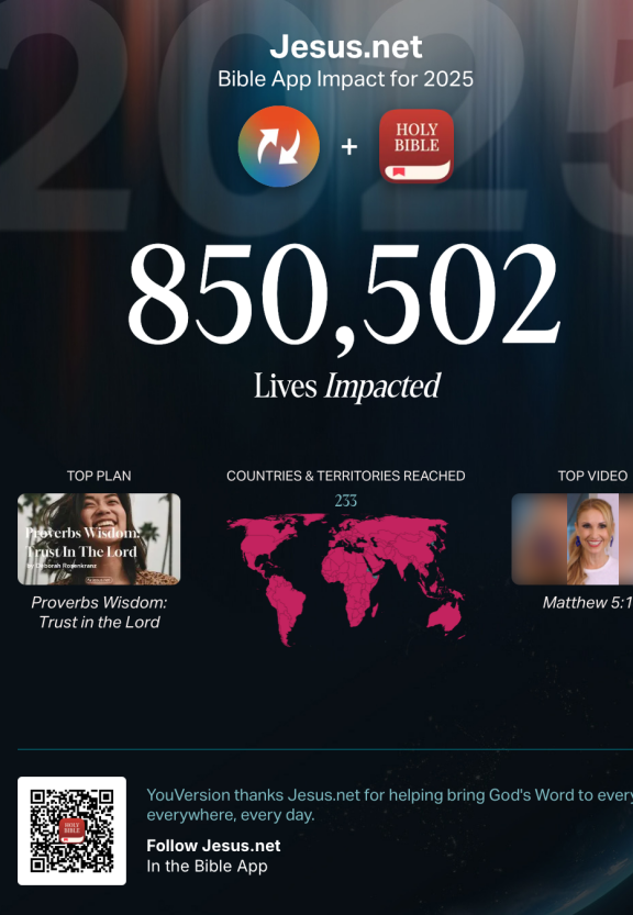 2025 was an exciting year as Jesus.net celebrated with YouVersion their 1 Billionth download of the Bible App!